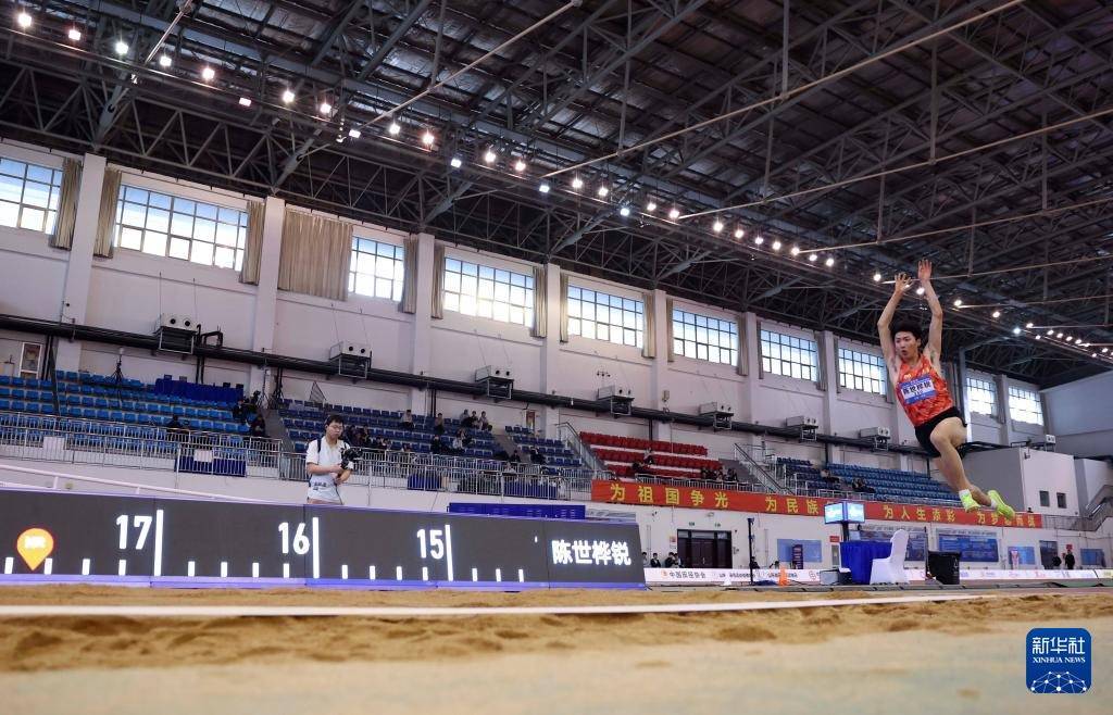 3月29日,2026年全国室内田径锦标赛男子三级跳远决赛在山东省济南市举行。